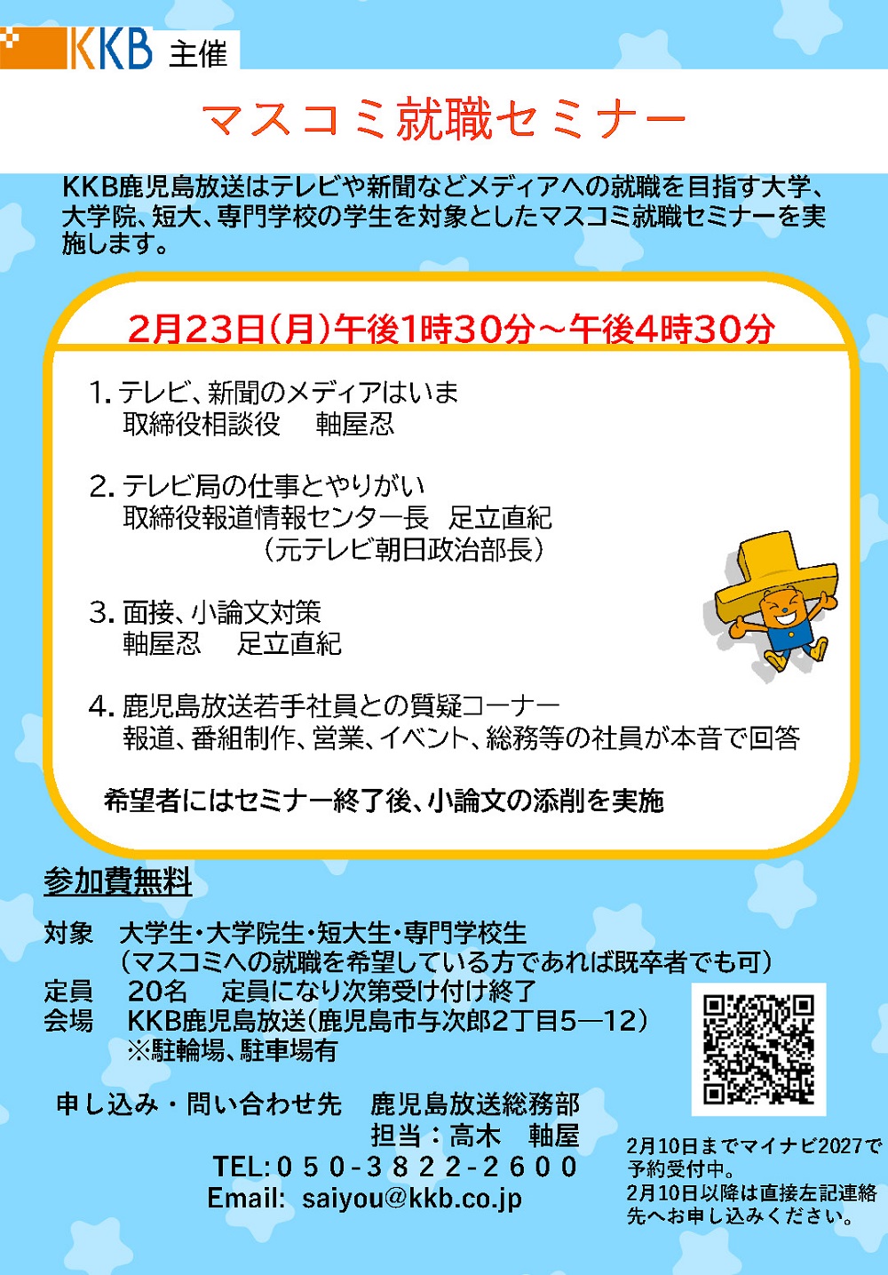 鹿児島放送総務部 【電話番号】 050-3822-2600