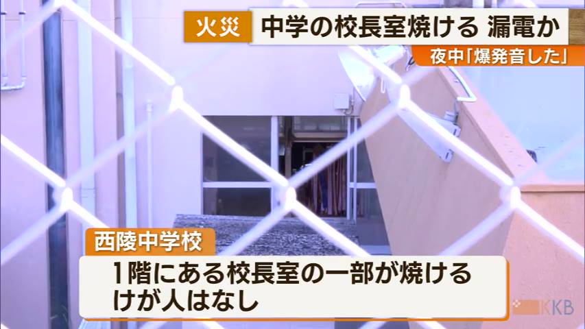 28日夜、鹿児島市の西陵中学校で火事があり、校長室の一部が燃えました。消防によりますと、28日午後7時半・・・