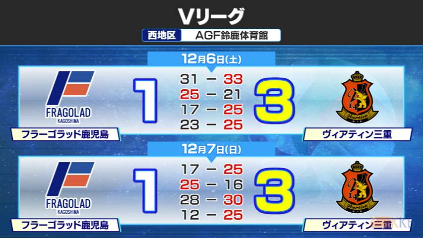 バレーボールVリーグのフラーゴラッドです。アウェーで年内最終戦に臨みました。首位を走るヴィアティン三重と・・・