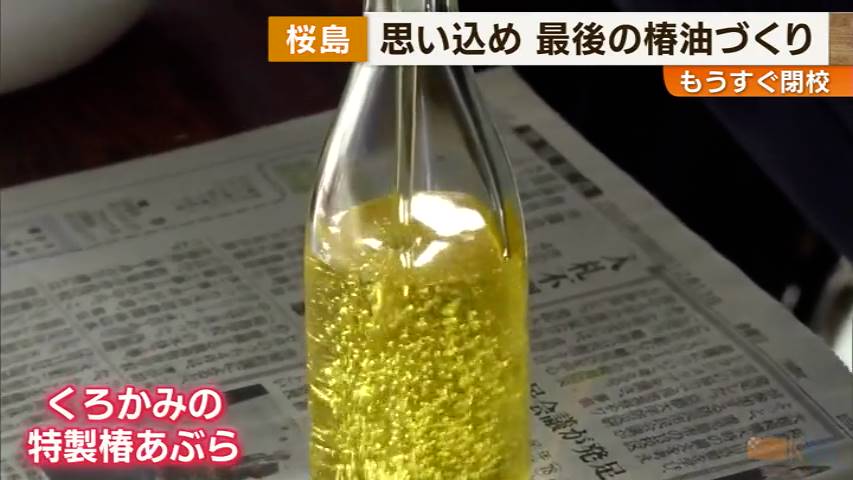 こちらは桜島でこの時期とれる椿油です。香りが良く保湿用などに使われます。今年度で閉校する桜島の学校で子どもたちが最後の・・・