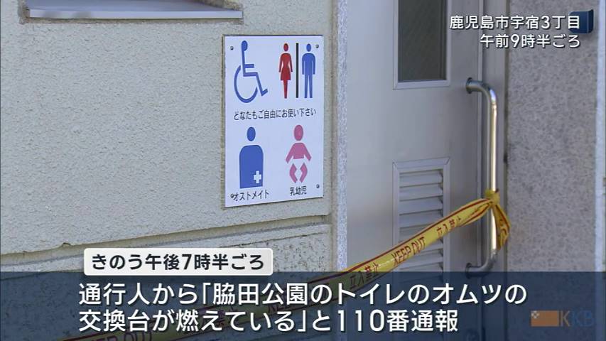 公衆トイレのオムツ交換台が燃える 放火の可能性も視野に捜査 鹿児島