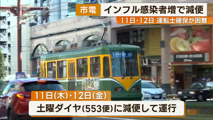 インフルエンザの感染者が増え運転士の確保が困難になったとして、鹿児島市交通局は11日と12日の2日間、市電を減便して運行・・・