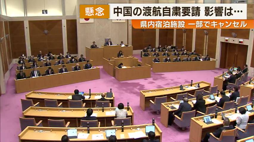 中国政府が日本への渡航を自粛するよう呼びかけたことを受けて、県内にも影響が出始めています。県議会でも質疑がありました。<・・・