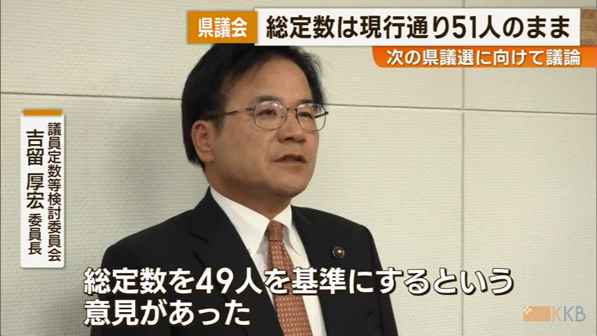県議会議員の定数などを検討する委員会が開かれ、総定数は51人のまま現行通りとすることを決めました。【議員・・・