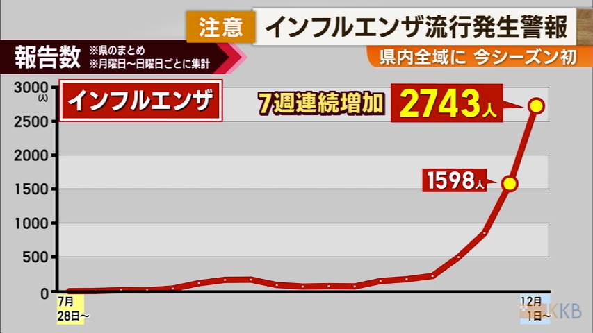 県内に今季初のインフル流行発生警報 7週連続で増加中 鹿児島