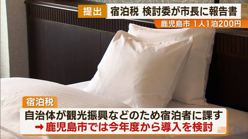 鹿児島市が導入を検討する「宿泊税」について、検討委員会は1人1泊につき200円とする方針をまとめた報告書を下鶴市長に提出・・・