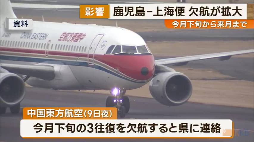 中国政府が日本への渡航自粛を呼びかけた影響が広がっています。鹿児島と上海の定期便が今月下旬と、1月のすべての便が・・・