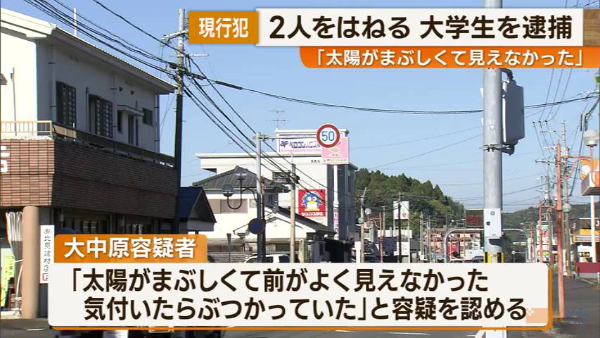 日置市で2人はねる事故 大学生を逮捕「太陽がまぶしくて見えなかった」