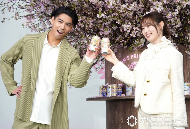 俳優・賀来賢人と福原遥が6日、都内で行われた「キリンビール『一番搾り』冬のお花見体験会オープニングPRイベント」に出席。“日本一早い”お花見を楽しんだ。 イベントには、本物の桜の木が登場。桜を見上げた賀来は「日本一早いお花見をできてうれしく思います。・・・