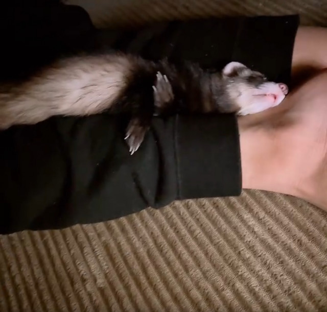 こたつで爆睡するフェレットが話題